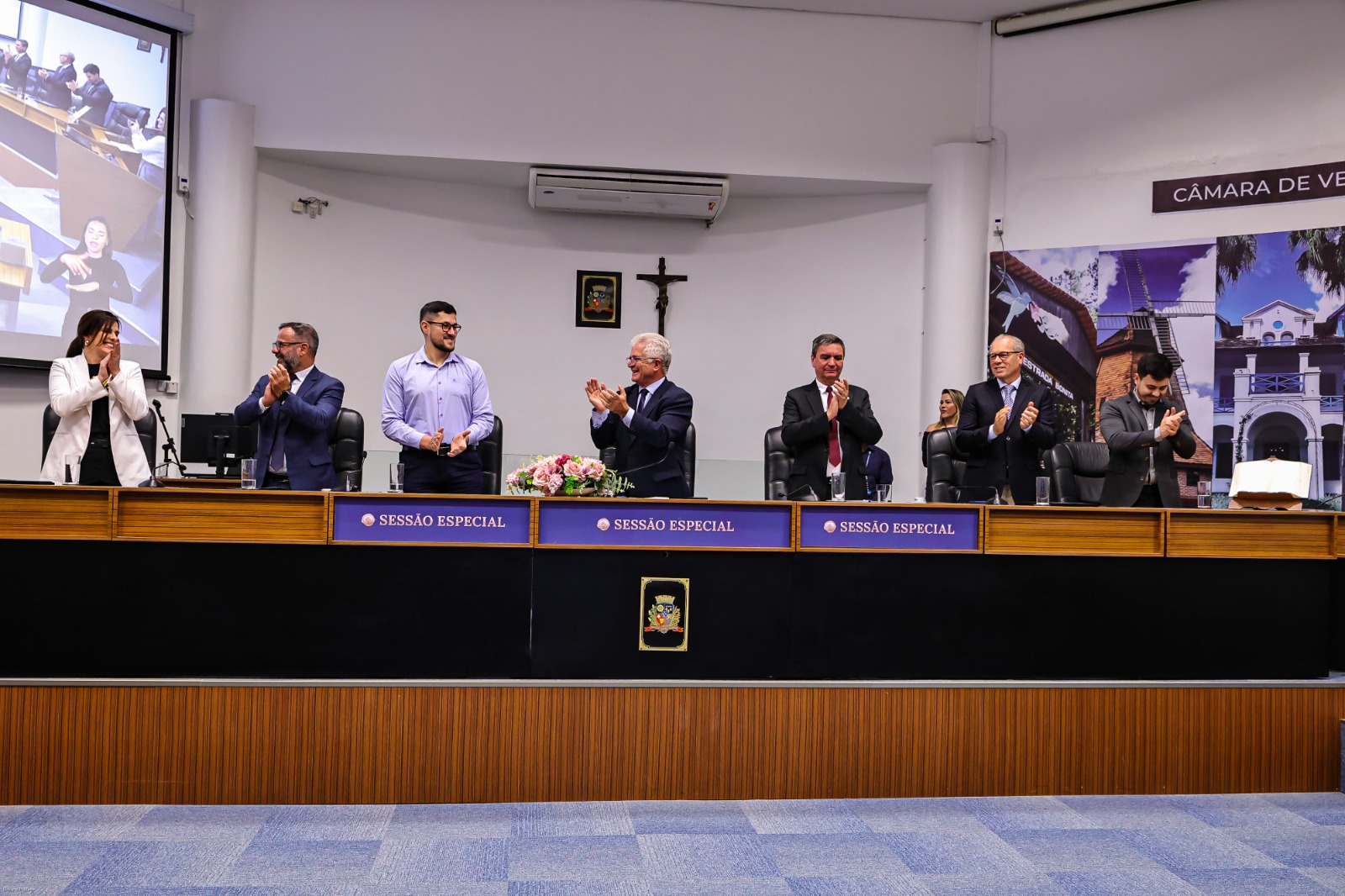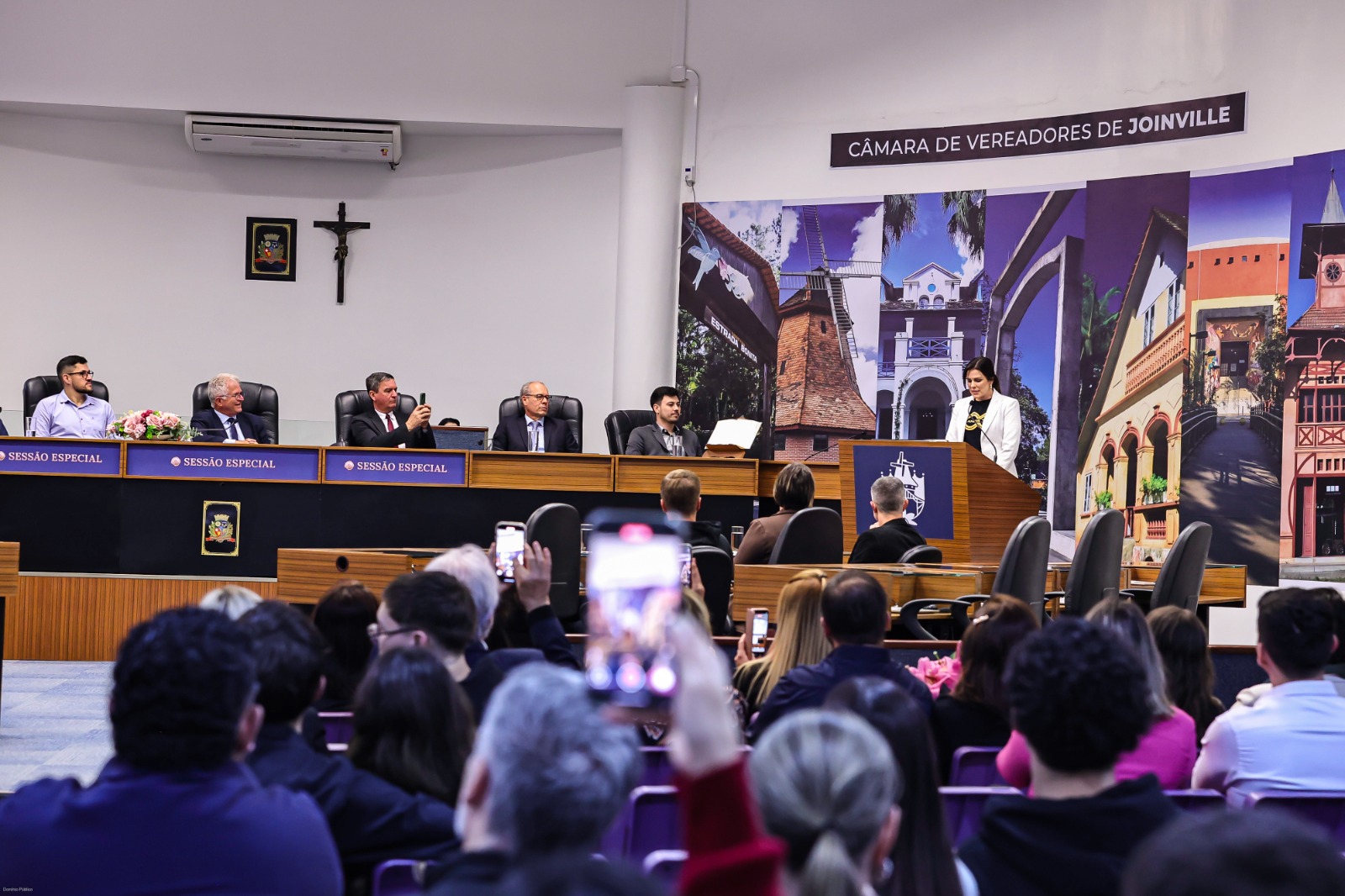 Durante a sessão, autoridades locais e representantes da empresa destacaram a importância histórica da Têxtil Grossenbacher para a economia e o desenvolvimento industrial da região, ressaltando o papel da empresa na geração de empregos e no incentivo à tecnologia têxtil.